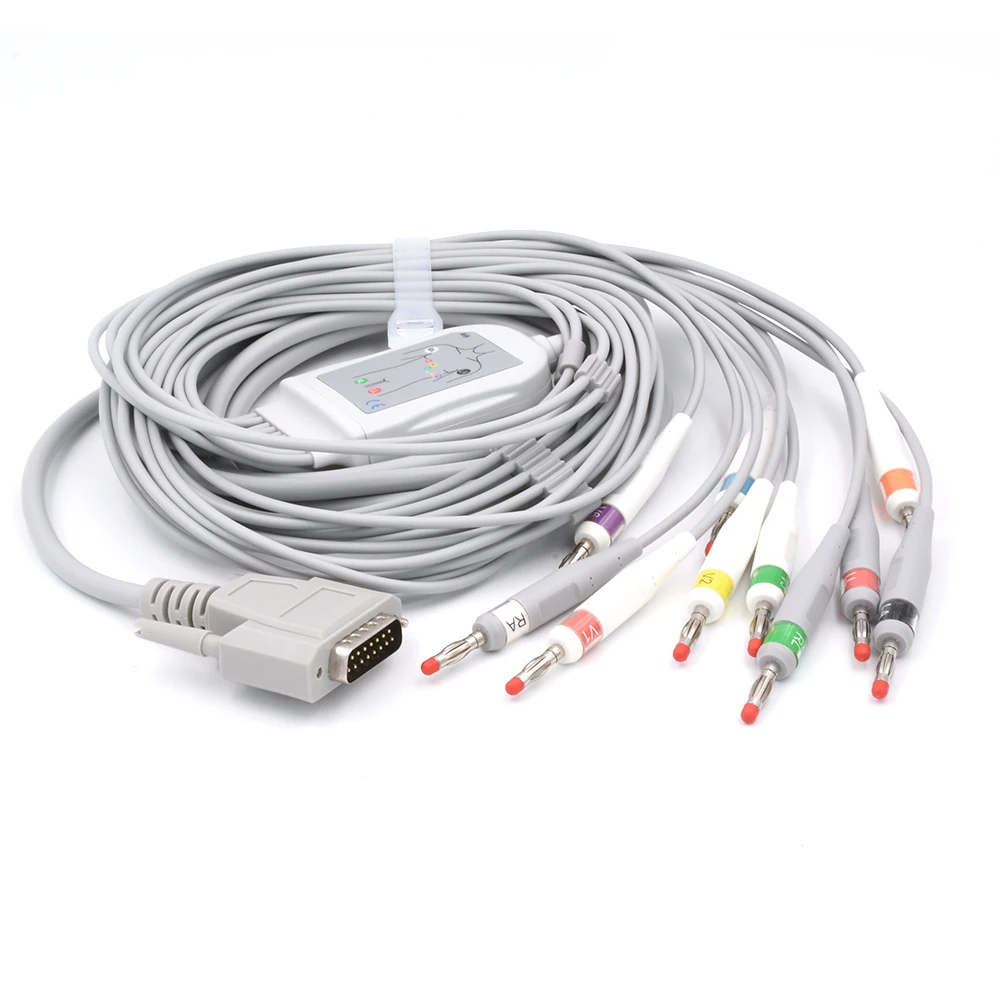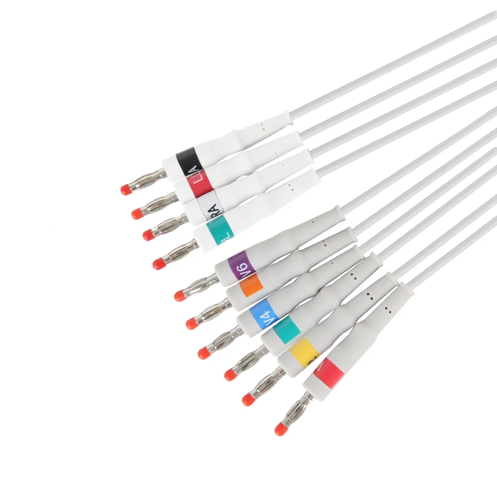 كابل EKG متصل مباشرة بـ 10 أسلاك ونهاية موزعة حسب المعيار القياسي AHA، متوافق مع إكسسوارات كابل EKG/ECG من Nihon Kohden