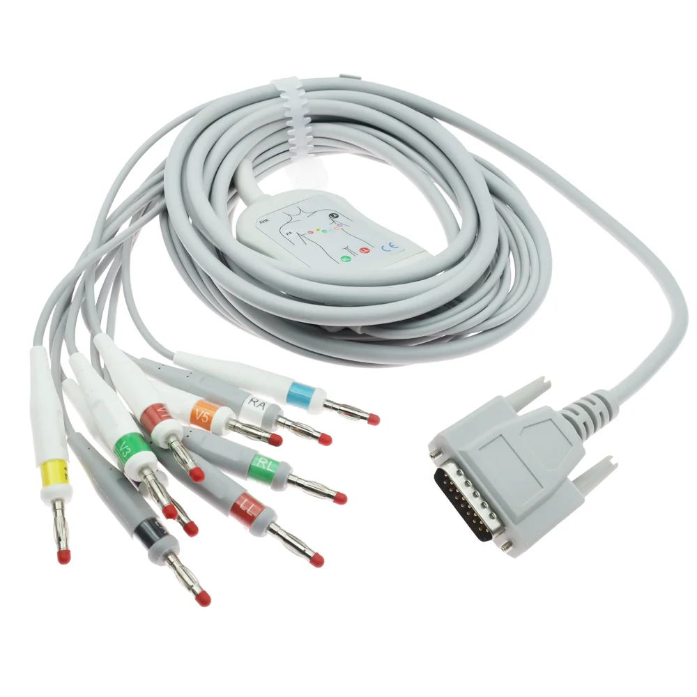 Factory Supply Cardiac Monitor Accessories Nihon Kohden ECG-9620L /ECG-2150 10 Leads Banana 4.0mm AHA Direct-connect EKG Cable
